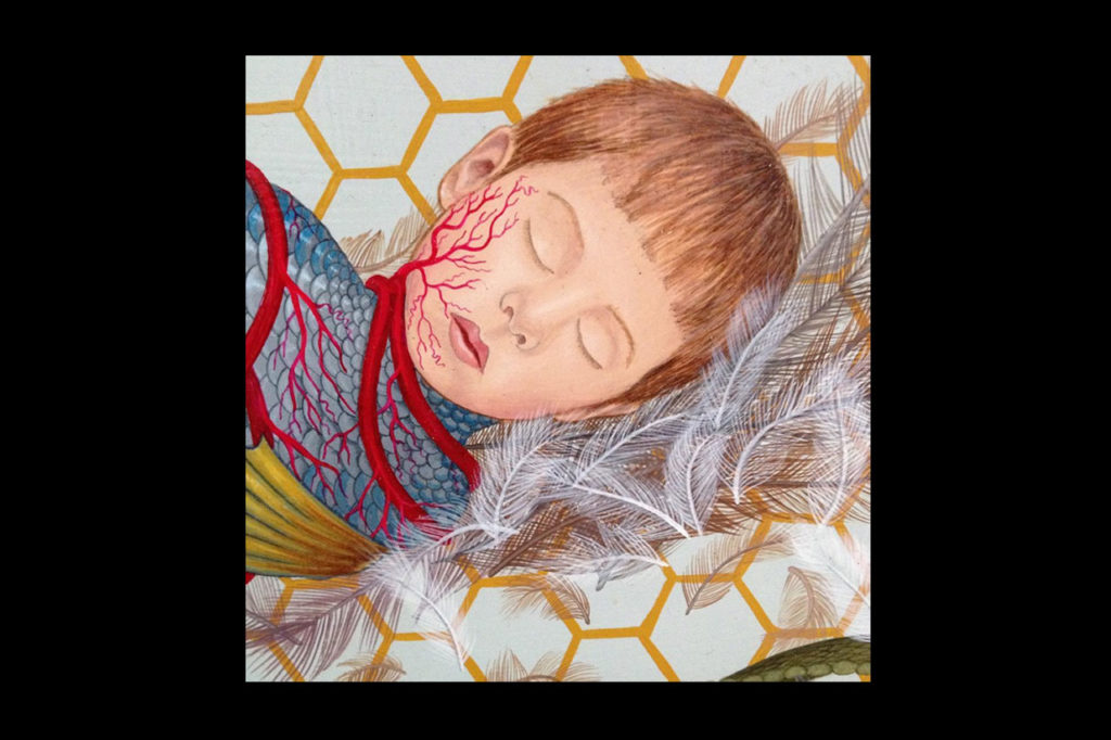 “Grace, delicacy, passion, and cruel self-obsession explodes and devours itself on the jewel-like surface of Anna Sea’s beautiful autobiographical songs in paint.” — Joe Coleman