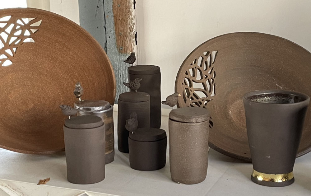 Rhonda Harrow-Engel will display her pottery in front of the Tulip & the Rose Café in Franklin.
